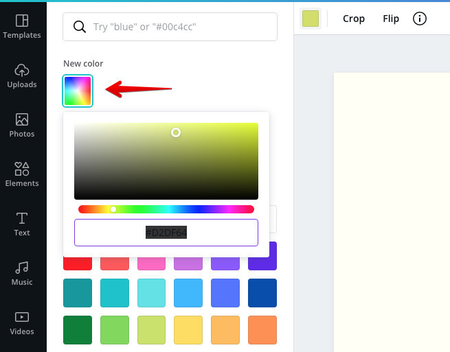 To change a color go to the color box. If you don’t like any of the options available, you can choose a new color. I’m going to use both pink, blue, and the original background to see which one my client likes best. Your colors will depend on both the mood you want to portray, along with your branding colors.